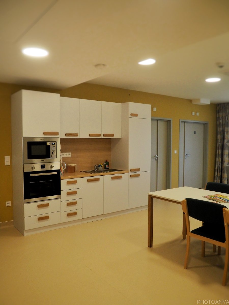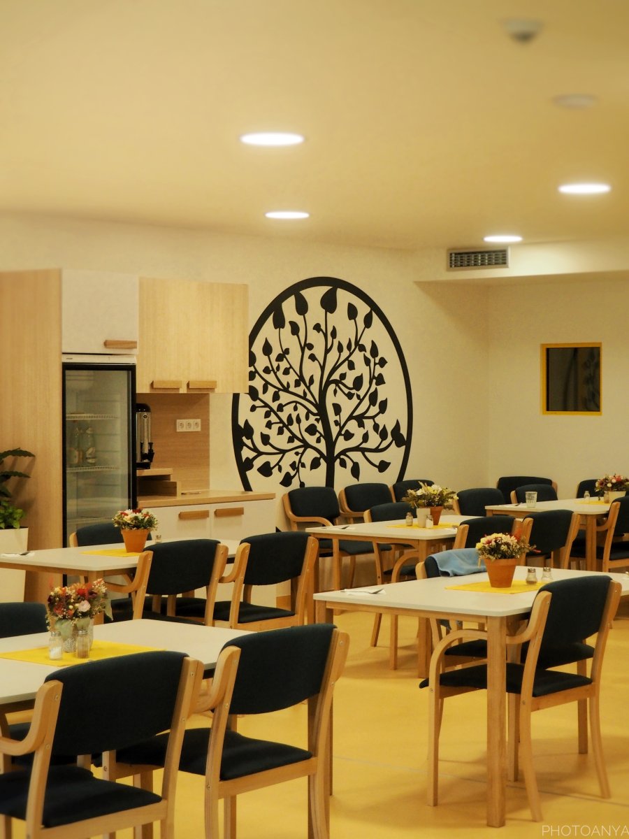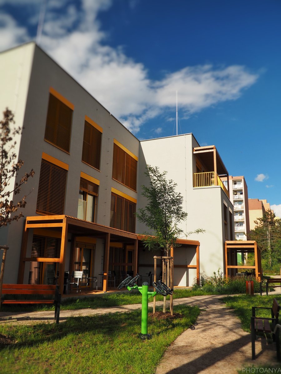 Jedná se o 3 podlažní objekt. Na každém patře jsou 1 a 2 pokoje. Součástí pokojů je i bezbariérová koupelna a WC. Na každém patře jsou i menší společenské místnosti, aktivizační místnosti. V přízemí objektu se nachází kuchyň a jídelna pro klienty.